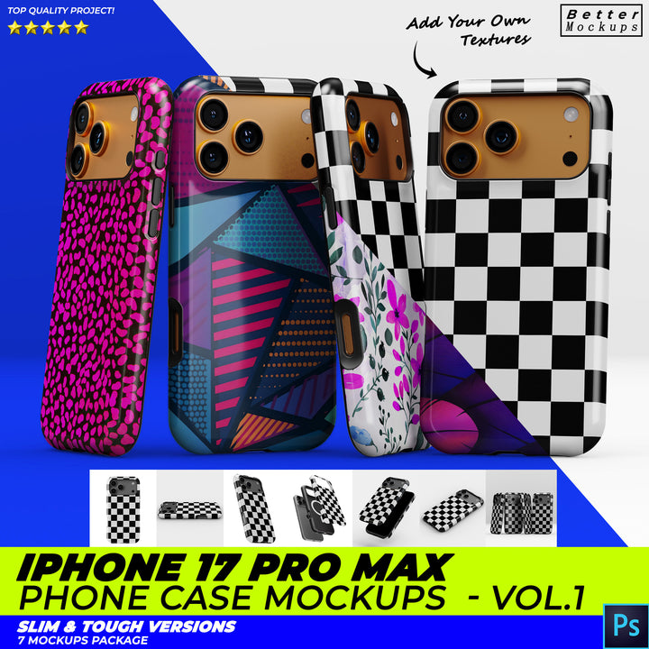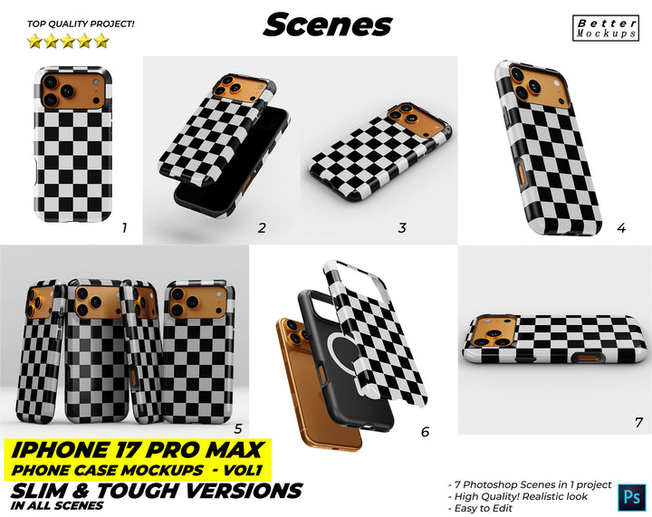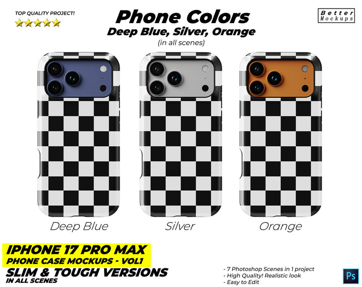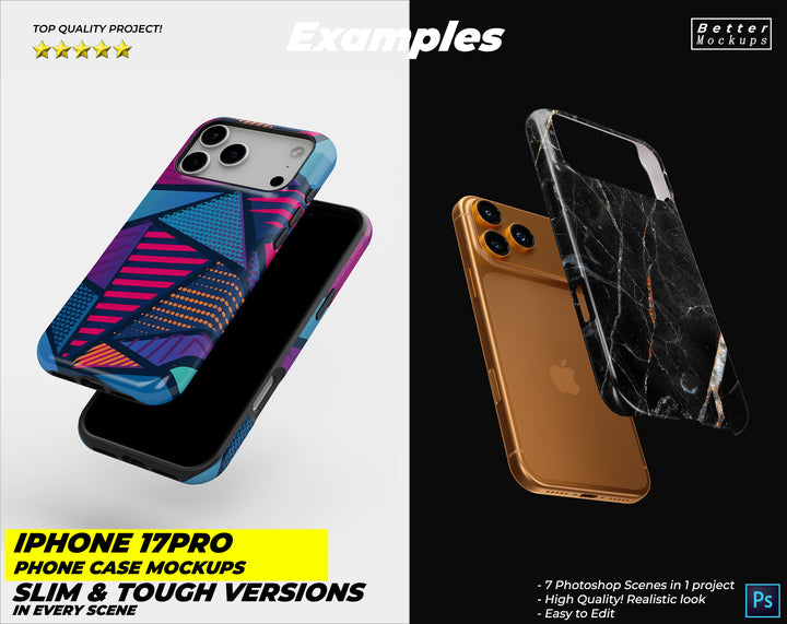 New iPhone 17 Pro Max Phone Case Mockups – For Tough & Snap (Slim) Cases - 7 mockup scenes in one project.