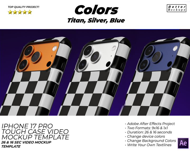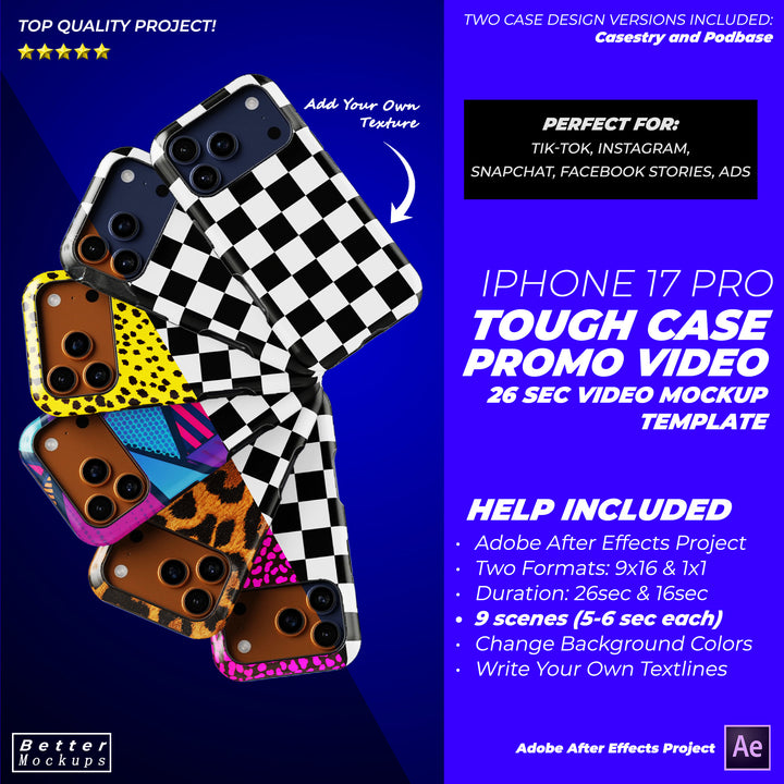 Tags: iphone 17 pro case mockup, phone case video mockup, after effects template, casestry mockup, podbase mockup, sublimation template, tough case mockup, phone case animation, iphone 17 pro max mockup, phone case video template, shopify video mockup, etsy video mockup, realistic phone case mockup