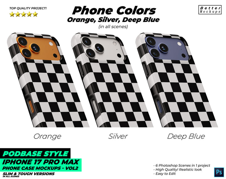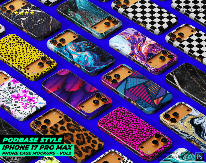 iPhone 17 Pro Max phone case mockups in Podbase Style!