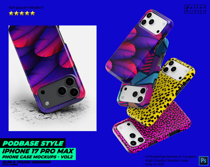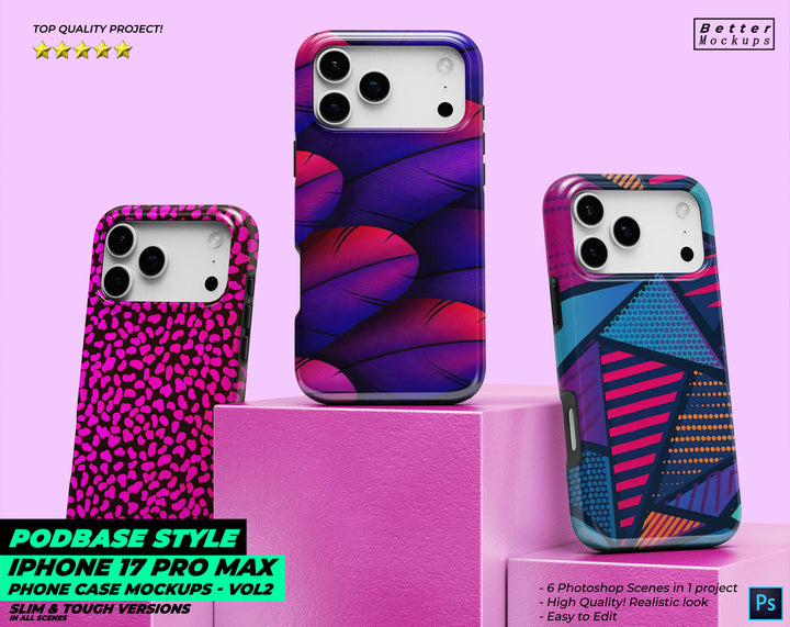 Podbase iPhone 17 Pro Max Phone Case Mockups (Vol2)
