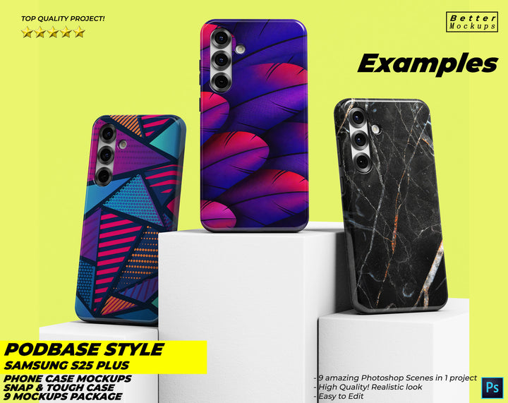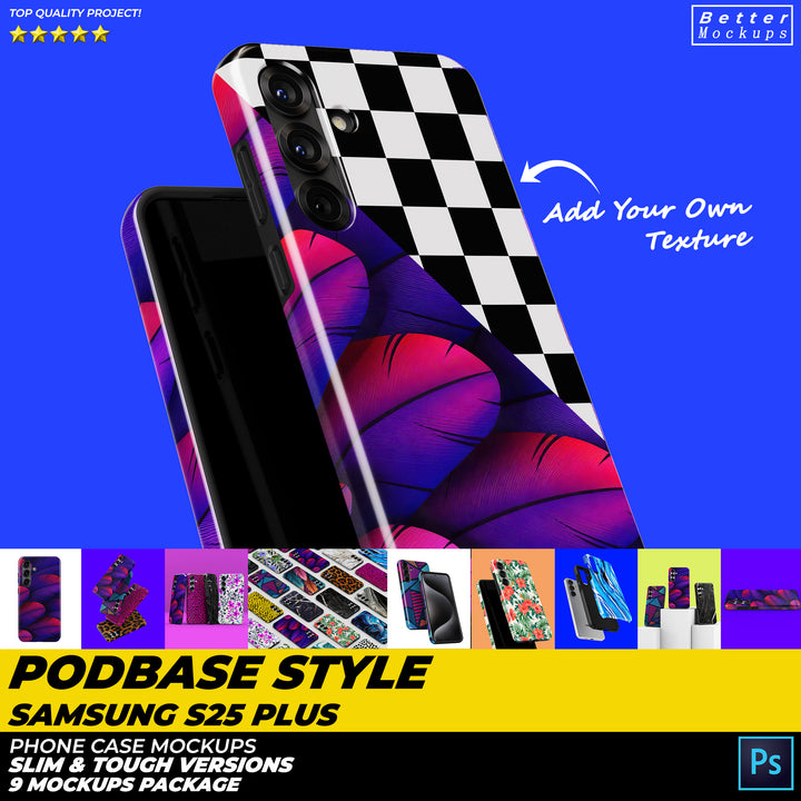 Samsung S25 Plus phone case mockups in Podbase Style!